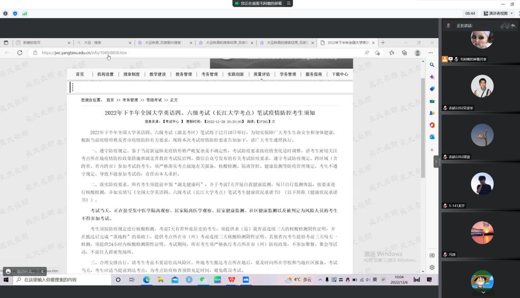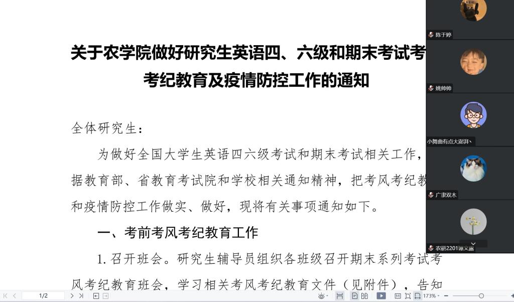 (通讯员 张意巧 王鑫悦)根据学校要求,为做好研究生英语四、六级考试和期末考试相关工作,12月5日,永利3044集团官网召开研究生考风考纪教育及疫情防控主题班会。
