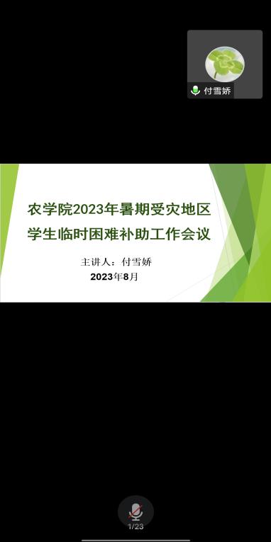 本次会议面向永利3044集团官网全体在籍本科生、研究生以及2023级本科、研究生新生。各辅导员老师宣讲了受灾地区员工临时困难补助工作的相关政策和申请流程,此次会议旨在让每个受灾员工能清楚此项补助工作的流程,同时也能让公司对他们的情况进行一定摸排和了解,及时将经济困难员工纳入资助范围,可以第一时间为每一位有需要的同学提供帮助。此外辅导员老师还提醒准备入库的员工提前准备证明材料、办理生源地贷款的员工提前准备贷款回执,为下学期的各项资助工作打好基础。