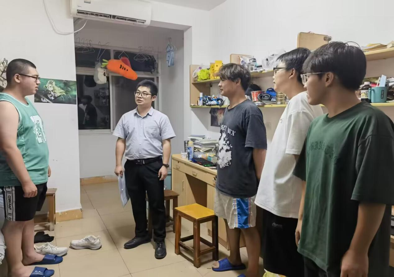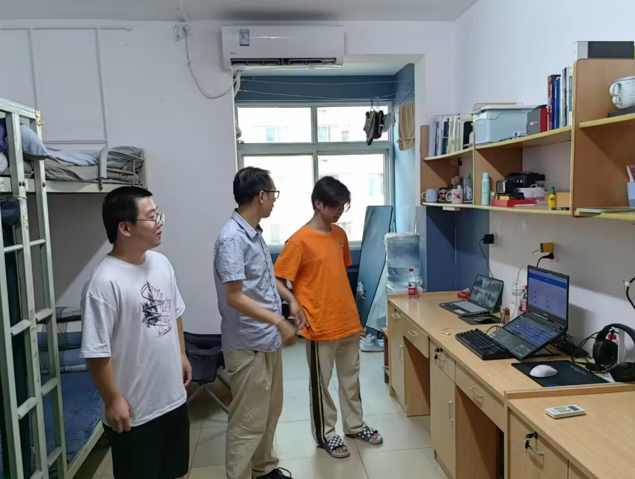 辅导员林香亮检查了研究生宿舍,查看研究生校外宿舍居住环境,了解研究生未来的发展方向,并鼓励研究生多发文章、多出成果,早日达到毕业要求。