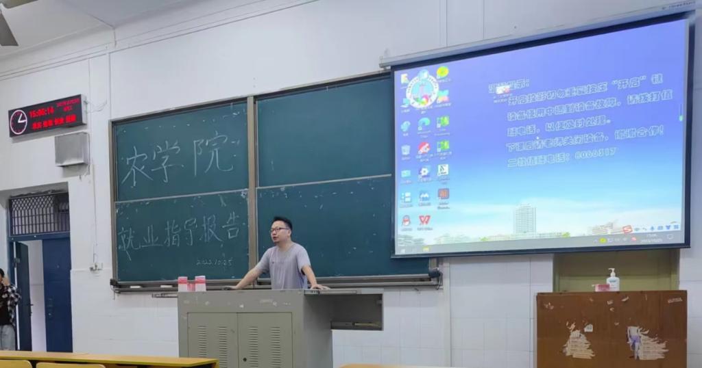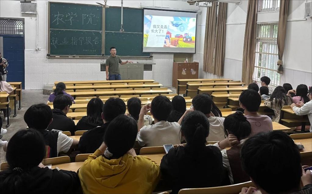 随后,韩飞从现代农业发展趋势、如何进行职业生涯规划和如何挑选企业等方面分享了自己的就业经验。他强调同学们要尽早了解各种校招信息和用人单位需求,培养就业技能,提前做好预备选项,做到有备无患。同时他还结合农学专业介绍了农业对世界的影响,并向同学们分享了现代农业国际局势,使同学们进一步了解农业就业形势,为将来的就业打好基础。