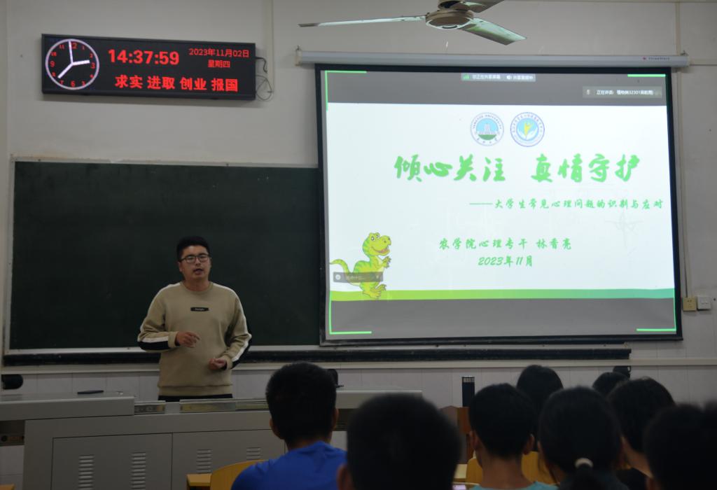 永利3044集团官网心理专干林香亮从老员工的身心特点和老员工心理健康的评判标准两方面进行介绍,引导员工骨干正确认识心理危机的防范、识别与干预。他通过讲述自助与助人方法,增加了同学们心理危机干预的知识和技能,帮助同学们在生活中正确自助与助人。