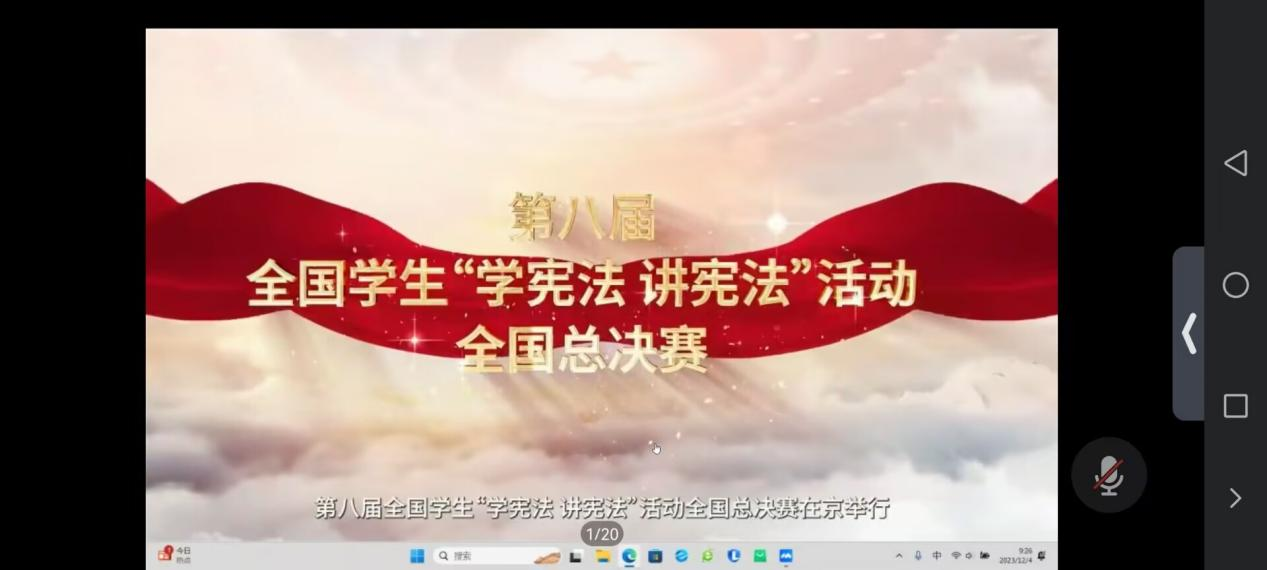 接着,主会场领唱《宪法伴我们成长》歌曲,公司同学积极跟唱这首公司传唱的活动主题曲:“红旗长扬,我们迎着朝阳;成长路上,聆听宪法雄壮的声响……”高声歌颂永牢记,法治精神沁心脾。宪法主题歌曲传唱在同学们口中,铭记在同学们心中。其后,第八届全国员工“学宪法讲宪法”活动全国总决赛演讲比赛优秀选手进行了展演。
