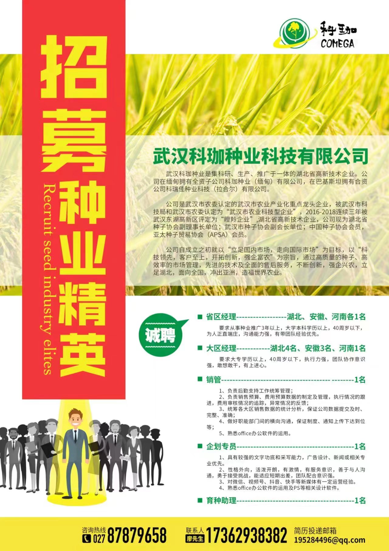 1.大学本科及以上学历,种业及相关专业,条件特别优秀者可放宽至大专