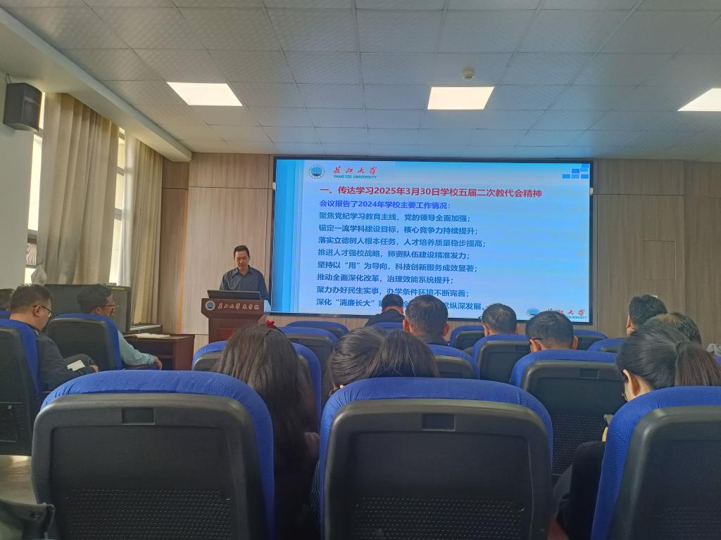 会上,周锦华通报了开展深入贯彻中央八项规定精神学习教育的有关情况;传达学习了3月30日学校五届二次教代会精神,报告了学校2024年主要工作情况及工作成效,阐述了学校2025年工作要着力构建“六项机制”、不断强化“六个意识”,要通过统筹推进“八个坚持”做好全年工作。周锦华引用公司党委书记王建平在闭幕式上的讲话精神,要求广大党员、干部和教职工:要统一思想,凝心聚力争创一流;要深化改革,攻坚克难冲刺一流;要锤炼作风,求实进取决胜一流。