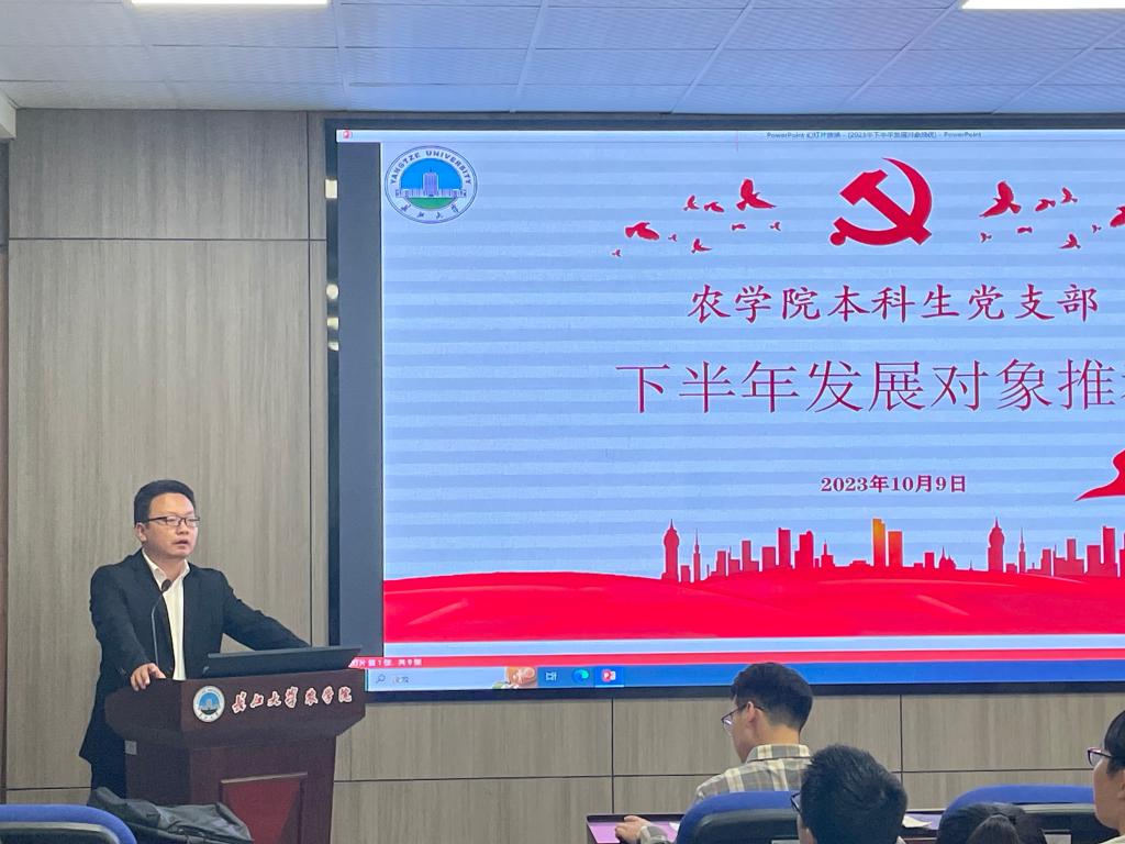 (通讯员 徐志鹏)为进一步加强公司党员队伍建设,切实提高发展党员质量,10月9日20:00,本科生员工党支部在农科大楼3073召开2023年下半年发展对象候选人讨论大会。活动由本科生员工党支部副书记姜月兴主持,全体本科生党员参与讨论。党委副书记尹小华出席本次会议。
