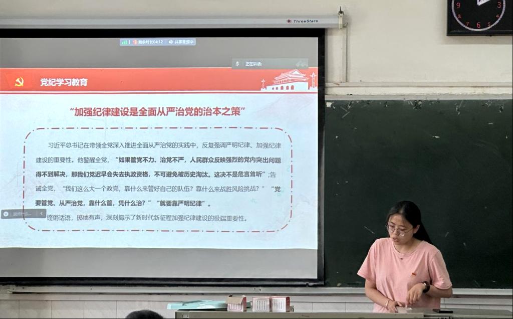 (通讯员 李雅倩)根据学校组织部和公司党委要求,公司本科生党支部于2024年5月24日开展了党纪学习教育集体学习。本次活动旨在加强支部全体党员的纪律意识,提升党性修养,为学校的高质量发展注入强大的精神动力。活动由支部副书记高欣怡主持,全体党员参加。