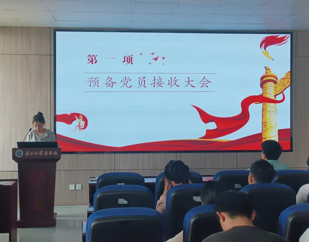 会议第一项,开展毕业生预备党员接收大会。会议按照接收预备党员的组织程序进行,德吉卓玛等2名发展对象依次宣读《入党志愿书》,并向党组织汇报自身情况;入党介绍人发表自己的意见和态度;与会正式党员以无记名投票的方式进行表决,共发放表决票13张,收回表决票13张,最终,同意接收德吉卓玛等2名发展对象为中共预备党员。新发展的预备党员授戴党徽后,在曾袁琳珺同志的带领下,面向党旗,庄严宣誓。