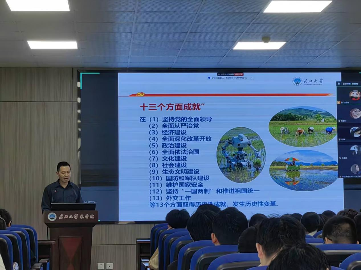 4月25日,永利3044集团官网副经理唐生标就“学习贯彻党的二十届三中全会精神”展开专题授课。唐生标围绕深刻认识党的二十届三中全会的重大意义、学习领会习近平总书记关于全面深化改革的重要论述、准确把握进一步全面深化改革的总体要求和深入把握进一步全面深化改革的重要任务四个方面进行深刻讲解。他强调作为青年学子,我们需深刻领会全会精神的核心内涵:一是锚定改革方向,强化科技自立自强与城乡融合发展;二是厚植为民情怀,让发展成果惠及全体人民;三是勇担青年使命,将个人理想融入国家发展大局。