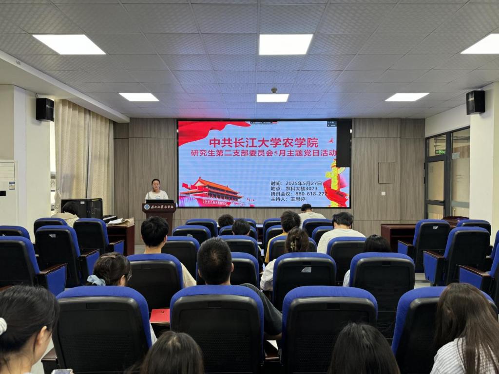 (通讯员 任娇)5月27日,公司研究生第二党支部在农科大楼3073会议室开展5月份主题党日活动,活动结合腾讯会议(ID:880 618 272)的方式同时在线上召开。全体在公司党员和校外联培党员共同参与,活动由王思婷同志主持。