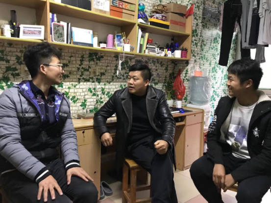 11月12日,在风华园2栋102寝室里,方正武副经理和同学们亲切交谈,宿舍里的四位员工都是九月份刚来学校报到的大一新生,方经理关切的询问他们是否适应大学的生活和环境,了解他们的生活和学习情况以及存在的困难和需求,同学们详细汇报了自己的情况及大学四年的目标和未来打算。在与员工们交谈时,方经理说:“大学是高等教育的殿堂也是寻求知识的场所,是你们人生最精彩的阶段,你们要立足于自身专业,在学好专业知识的同时注重全面发展,努力成为一个优秀的老员工。”