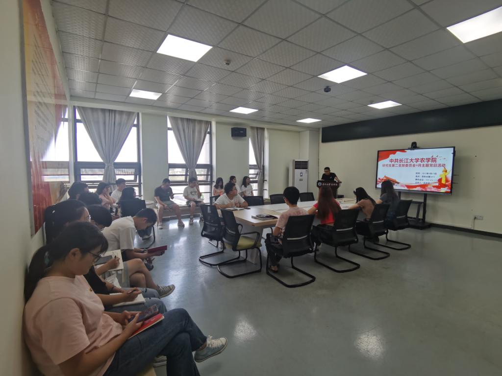 (通讯员 杨阳)9月15日下午2点半,公司研究生第二党支部在农科大楼3071开展了9月份主题党日活动,活动结合腾讯会议的方式开展。全体在公司党员和校外联培党员参与了此次活动,活动由支部副书记肖永欣主持。