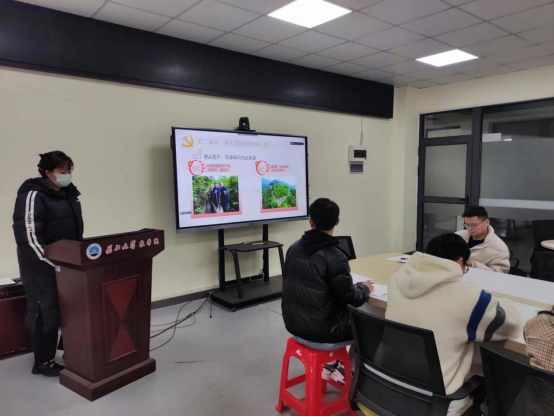 随后进行2月主题党日活动,全体党员同志集体诵读《中国共产党章程(修正案)》第二章部分。苏涛同志讲授以《“当代愚公”黄大发》为题的微党课,她呼吁大家,作为党员,要坚定信仰守初心、践行宗旨守初心、实干担当守初心。