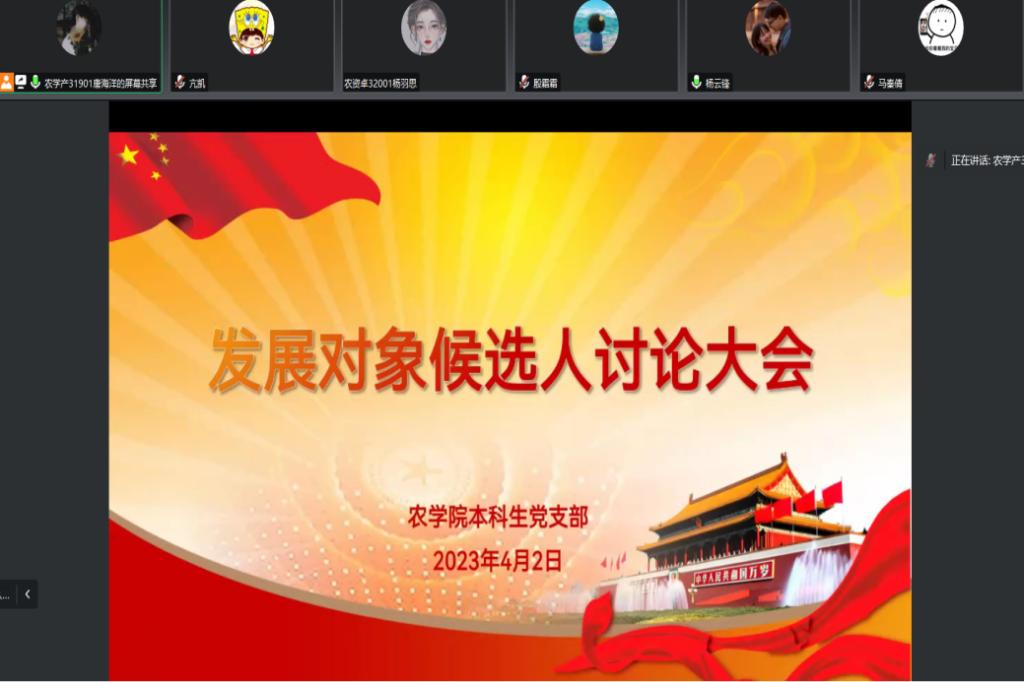 (通讯员 亢凯)为进一步加强公司党员队伍建设,切实提高发展党员质量,4月2日下午3:00,公司本科生员工党支部在腾讯会议召开2023年上半年发展对象候选人讨论大会。活动由本科生员工党支部副书记唐海洋同志主持,全体本科生党员参与讨论。永利3044集团官网本科生员工党支部书记杨云锋同志出席本次会议。