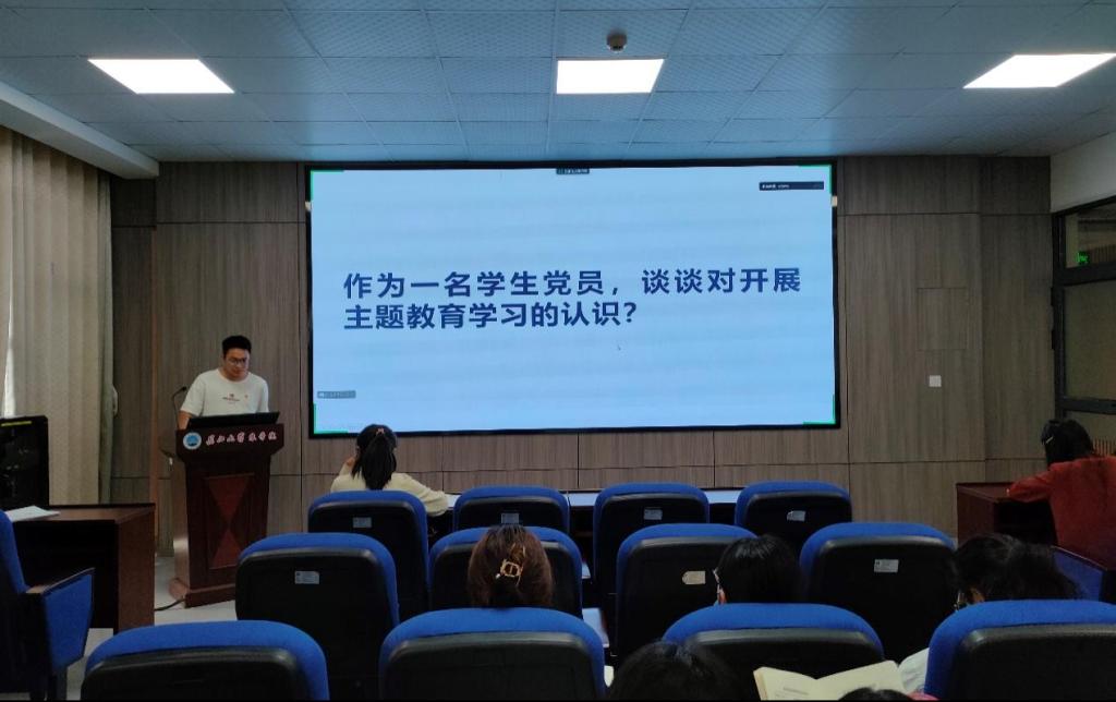 会议伊始,魏喜红同志带领全体党员重温入党誓词,赵伟同志对本月党费缴纳情况进行了说明,部分党员同志轮流诵读《中国共产党章程(修正案)》第五章相关内容。随后进入党课(微党课)与集体学习党的创新理论环节,由宋梦圆同志讲授党课《做新时代合格党员》;毛国庆同志带领学习《论党的自我革命》;邓小倩、吴怡燃同志分别带领学习《习近平给中国农业大学科技小院的同学们的回信》、《关于在全校深入开展学习贯彻习近平新时代中国特色社会主义思想主题教育的实施方案》。随后,全体党员共同观看视频《如何理解教育、科技、人才是全面建设社会主义现代化国家的基础性、战略性支撑》。