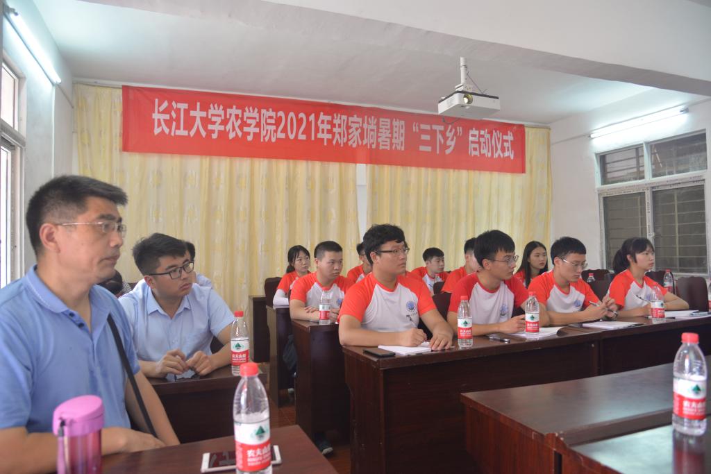 通讯社讯(通讯员 邓世媛 罗旖柔)7月16日,永利3044集团官网乡村振兴实践队在党委副书记谭亮魁、分团委书记侯聪、辅导员林香亮的带领下,在兴山县水月寺镇郑家埫村举行永利3044集团官网暑期三下乡暨青年红色筑梦之旅启动仪式。驻村工作队队长罗学才、驻村工作队刘德忠、华强化工生态农业技术服务中心培训部部长邓超然、兴山县财政局工作队董辉、郑家埫村村委会妇联主任黄教玲、郑家埫村村官简玲丽参加了仪式。