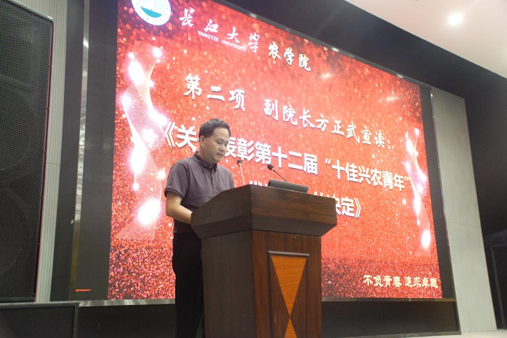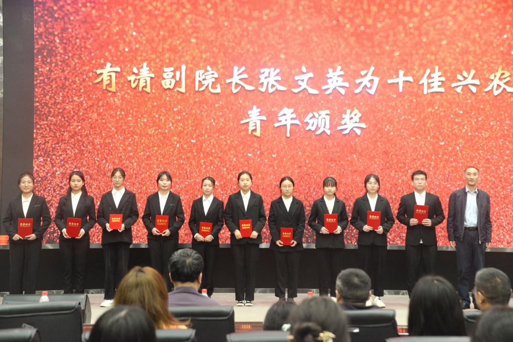 永利3044集团官网副经理方正武宣读第十二届“十佳兴农青年”表彰文件,并向获奖同学表示祝贺,鼓励他们再接再厉,也鼓励广大同学全面发展,努力成为创新型农业高质量人才。副经理张文英为这十佳兴农青年颁奖并合影留念。