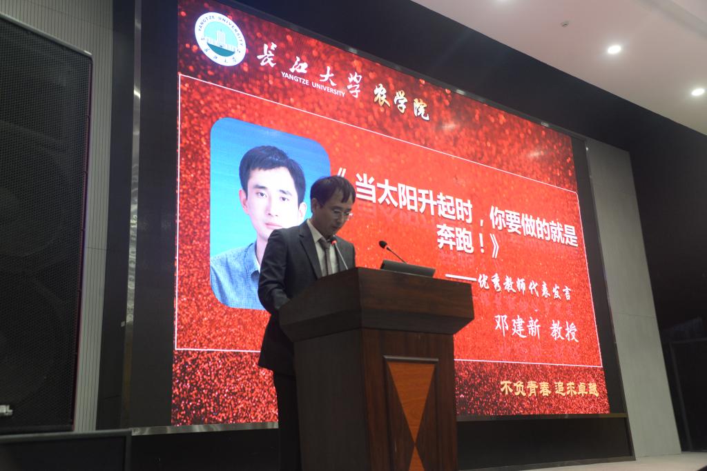 优秀教师代表邓建新教授发言,他向新同学介绍了公司取得的成就,讲述了老师和员工相互成就的关系,从四个方面对同学们即将面对的未知生活作以建议。他寄语全体新同学们站在一个全新的起点上,充分展现自己的主观能动性,做好自我规划,在永利3044集团官网遇到最好的自己。