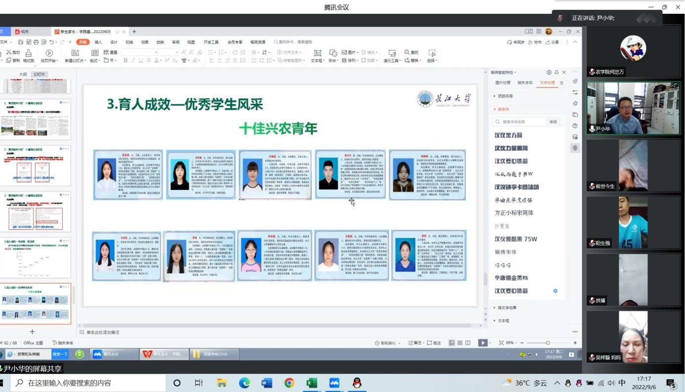 (通讯员 夏应翔)为促进家长和2022级新生更加深入了解大学学习和生活,明确员工在校的发展规划,加强家校联动,9月6日下午,公司在线上召开了2022级新生线上家长会,经理李俊凯、党委副书记尹小华、新生班主任、新生辅导员等参加了会议。