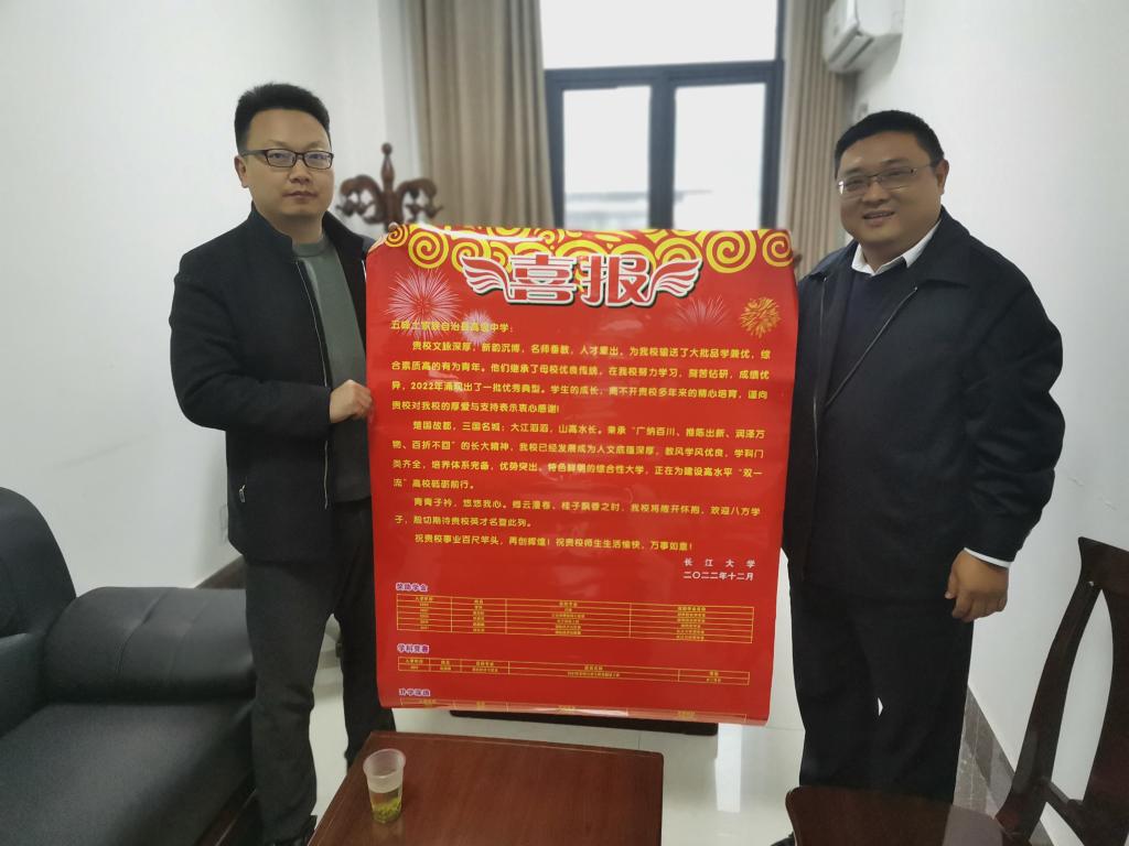 (通讯员 林香亮)2023年3月—4月,永利3044集团官网副经理邵四海、党委副书记尹小华、组织员章保平、招生专干林香亮一行四人前往宜昌包片高中开展本科生招生走访宣传,并为各所高中送上喜报。