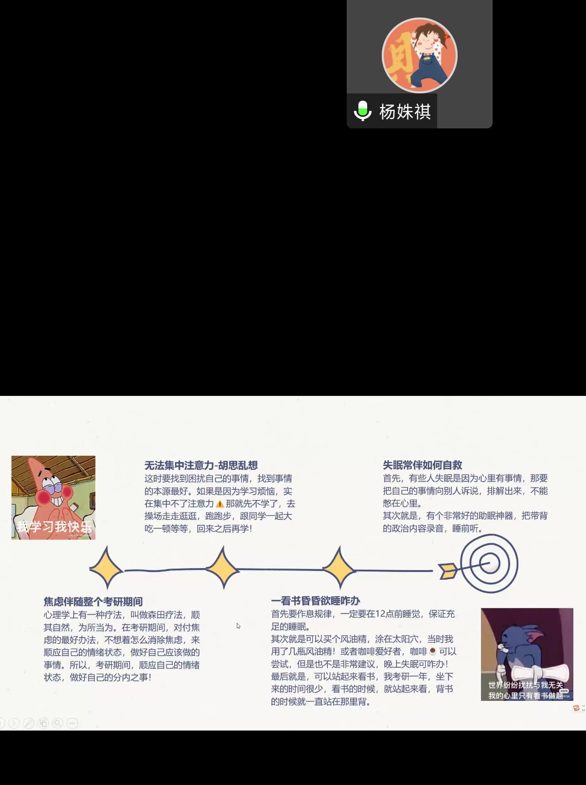 (通讯员 李雨珈)为使同学们更加了解报考研究生的细节,提高公司员工的报考率,鼓励有意向的同学报考研究生,9月23日,公司在腾讯会议召开2023届毕业生考研动员大会。会议由学工办主任杨云锋主持,研究生杨姝祺、部分2023届毕业生参加此次会议。