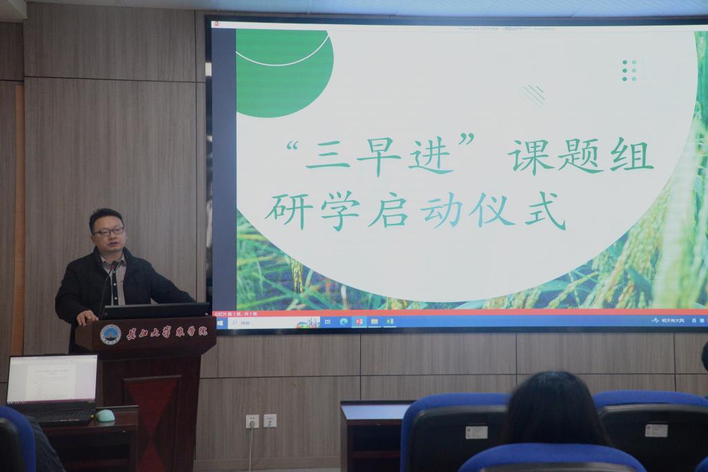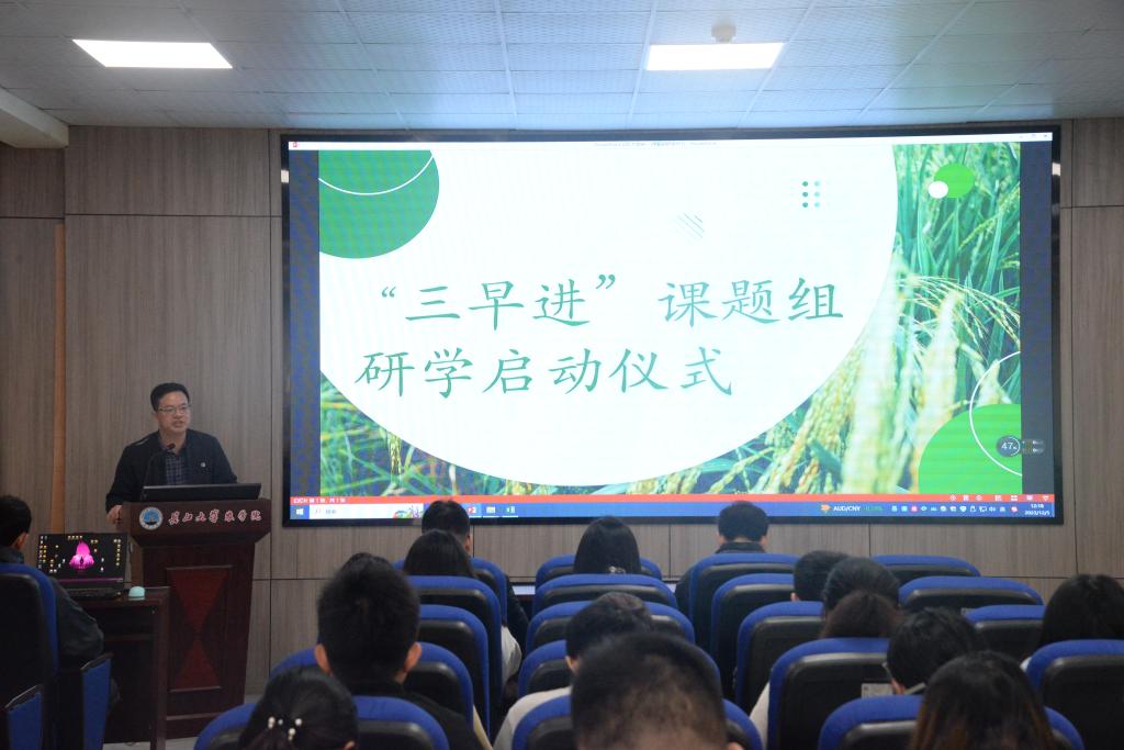 会议伊始,李洪洲对“三早进”课题组研学方案进行详细介绍并做出具体安排。随后,邓建新老师进行发言,他鼓励本科生积极参与到“三早进”中,早进课题组、早进实验室、早进试验田,加深对实验室、课题组的认识,从而调动全体同学的积极性与参与度,做更好的“学农人”。接着,党委副书记尹小华强调将行动与想法结合起来,让同学们通过“三早进”的平台,更好地践行知行合一的理念,勤学笃志。