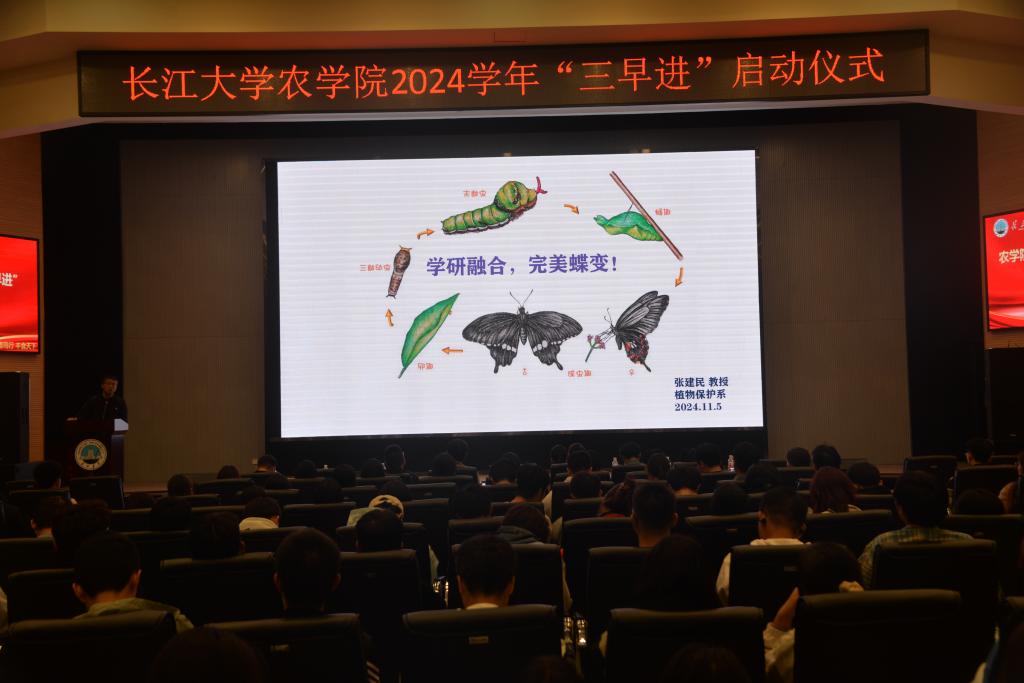 (见习记者 吴泓萱 邬道瑾/文 严树彬 向建华/摄)为了促进员工厚植学农爱农情怀,坚定强农兴农的时代使命,将科研实践与理论实践结合起来,公司于11月5日19:00在农科大楼1058会议室举行2024年“三早进”启动仪式。仪式由党委副书记尹小华主持,经理助理邓建新教授、植保系张建民教授、分团委书记付雪娇、24级辅导员唐玉婷、课题组对接研究生、23级和24级班主任及全体员工参与此次仪式。